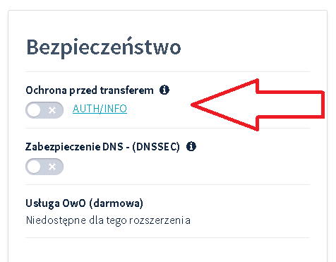 - Gdy blokada transferu będzie już wyłączona, kliknij przycisk „AUTH/INFO”, aby wygenerować kod.